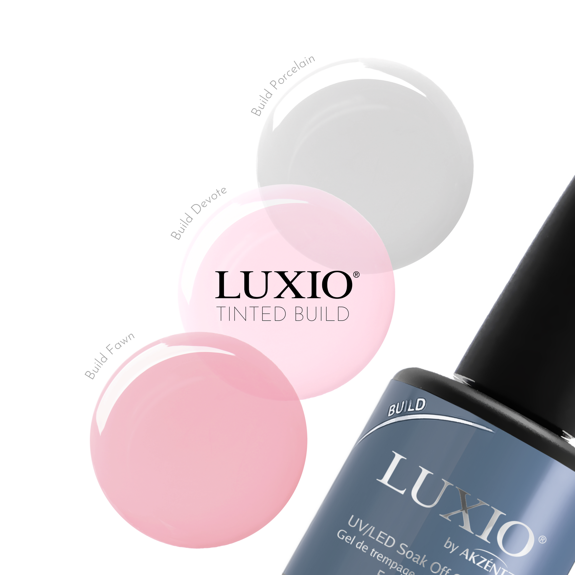LUXIO BUILD after LUXIO BASE or X-BOND then apply your favorite LUXIO COLOR and finish with SHINE-ON.